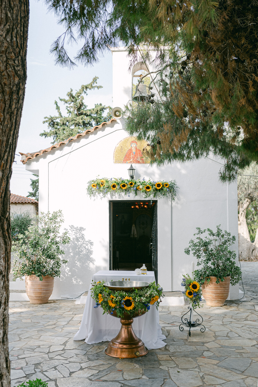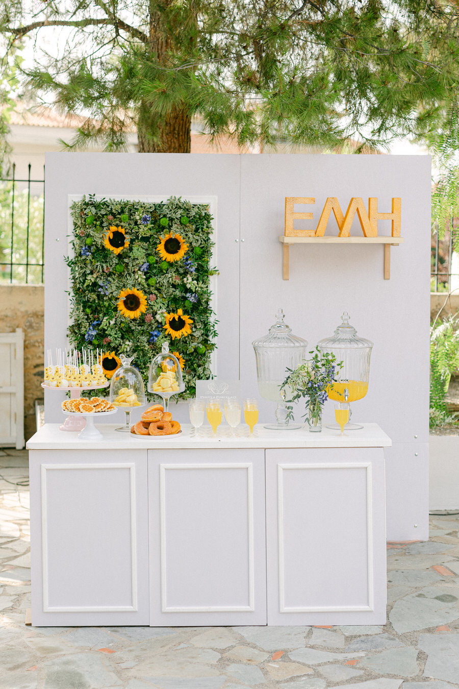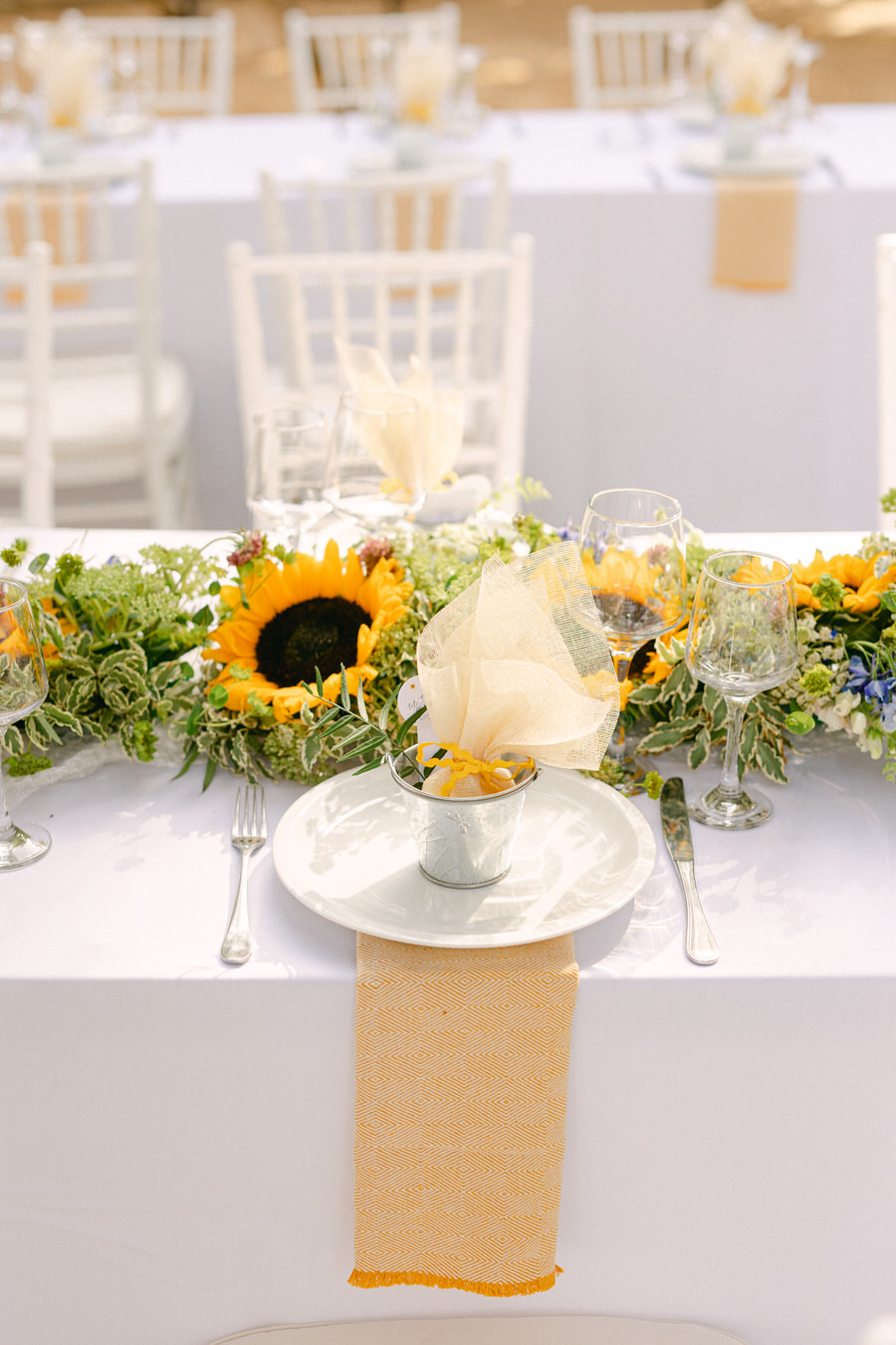 The decorations were a sight to behold, weaving a tapestry of joy that captivated every guest. Sunflowers, the show stars, stood tall and proud, embodying the spirit of renewal and celebration that defines a christening. This wasn’t just a gathering; it was a vibrant celebration of life, perfectly framed by the natural beauty of Greece during one of its most picturesque times.