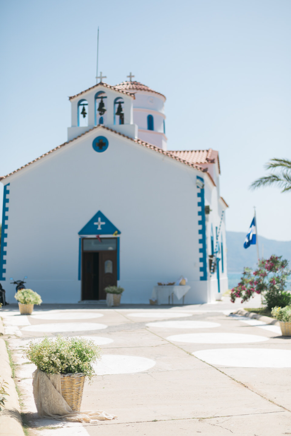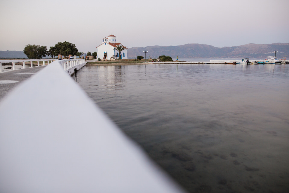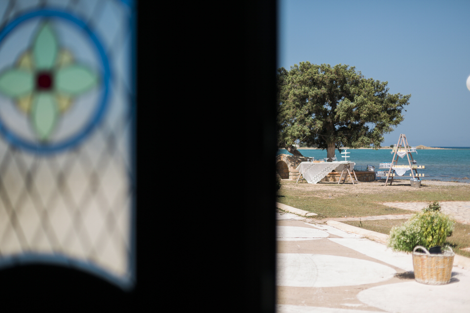 Aggelianna’s christening in Elefonisos was held in the church of St. Spyridon. The church was built in 1858 to honor Saint Spyridon the Sailor. It is the main church of the island and is built on a tiny separate piece of land which is connected by a bridge over shallow waters to the rest of the island. What a magical way to enter the church!