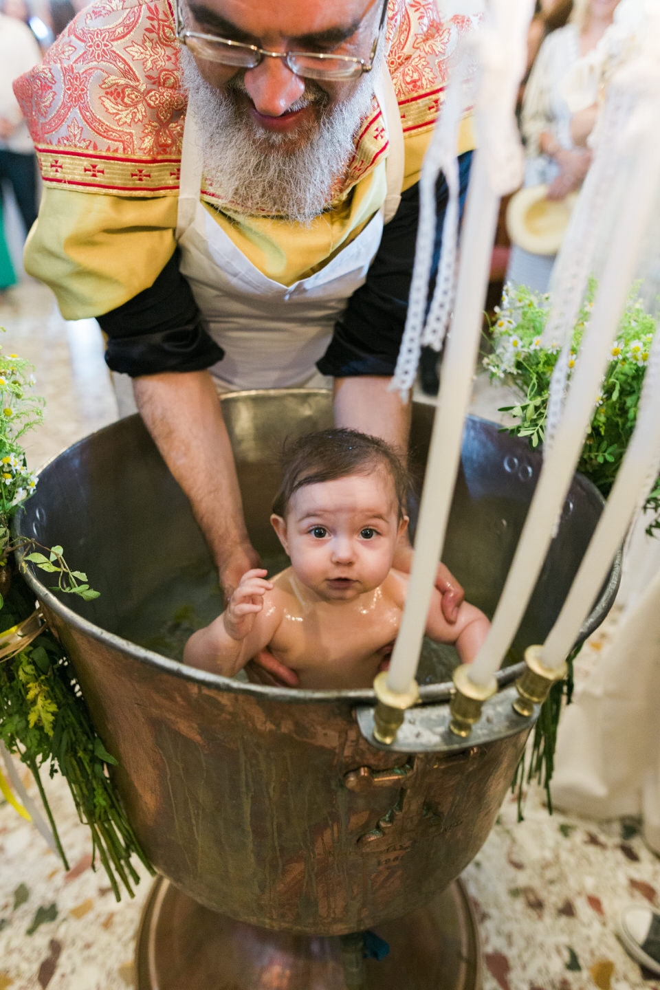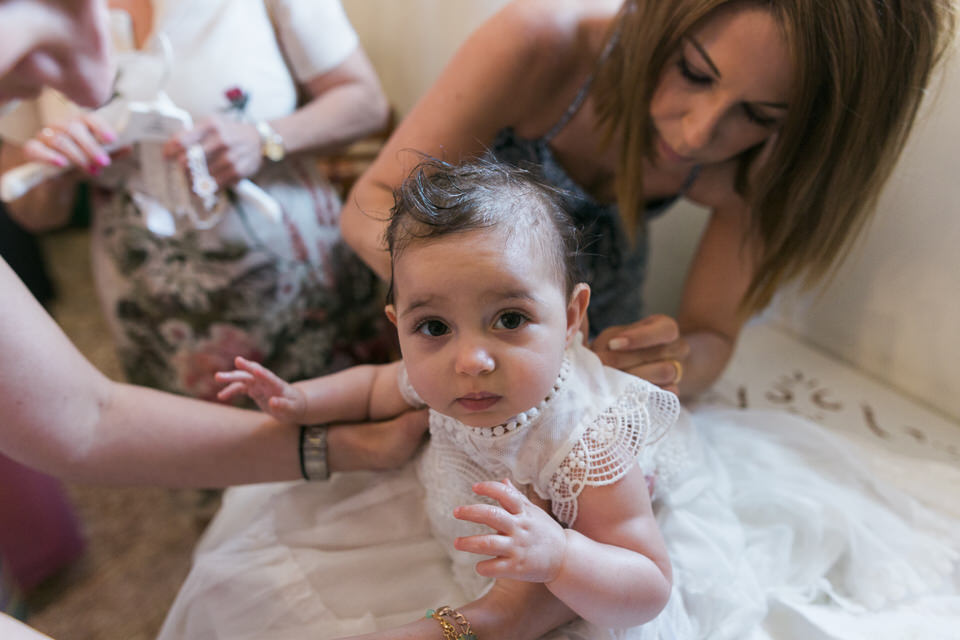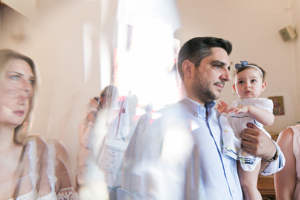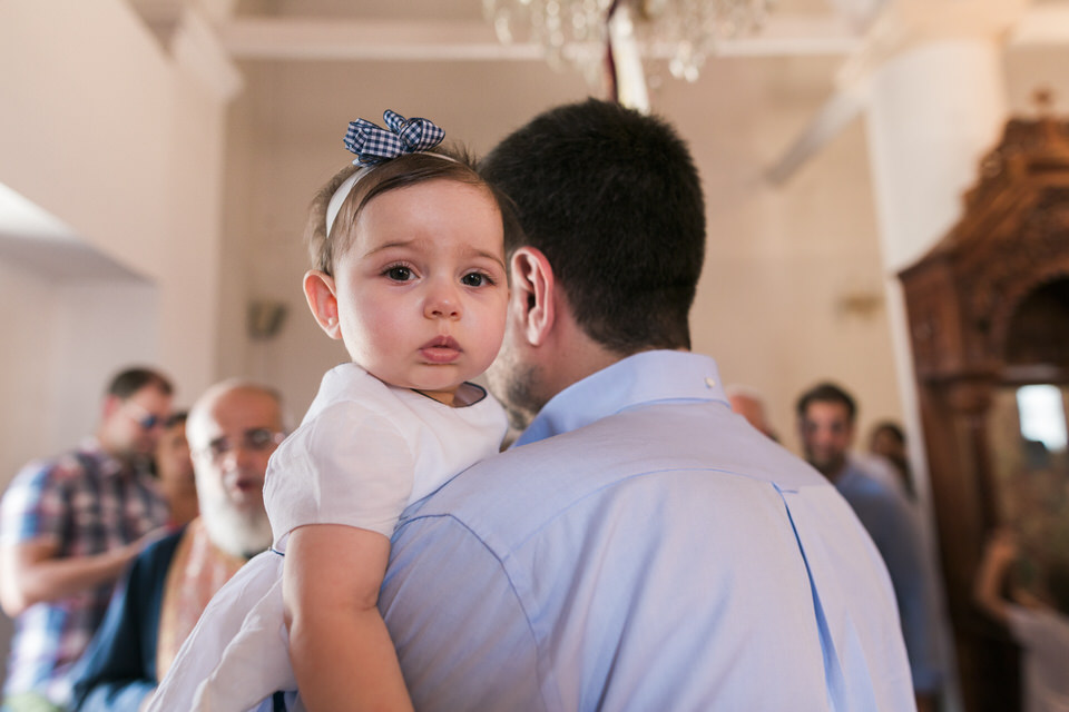 Aggelianna was cute and easy to photograph. Actually, she looked as if she was born to smile in front of the cameras! A natural-born star! The cutest little angel I have ever met. She was socializing, going from hug to hug, and spreading smiles to all guests. She even did not shed a tear during the whole ceremony.