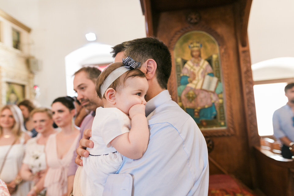Although on the christening day, we had one of the hottest summer days in Greece, nearly 43°C under the shadow, we all were in a great mood. Everything around us was melting. It was a blessing that the christening was surrounded by the sea breeze… The location was ideal and put friends and family in a vacation mood, making everyone radiant and happy.