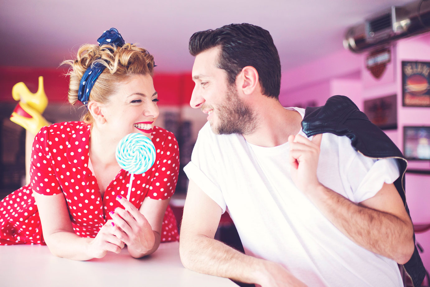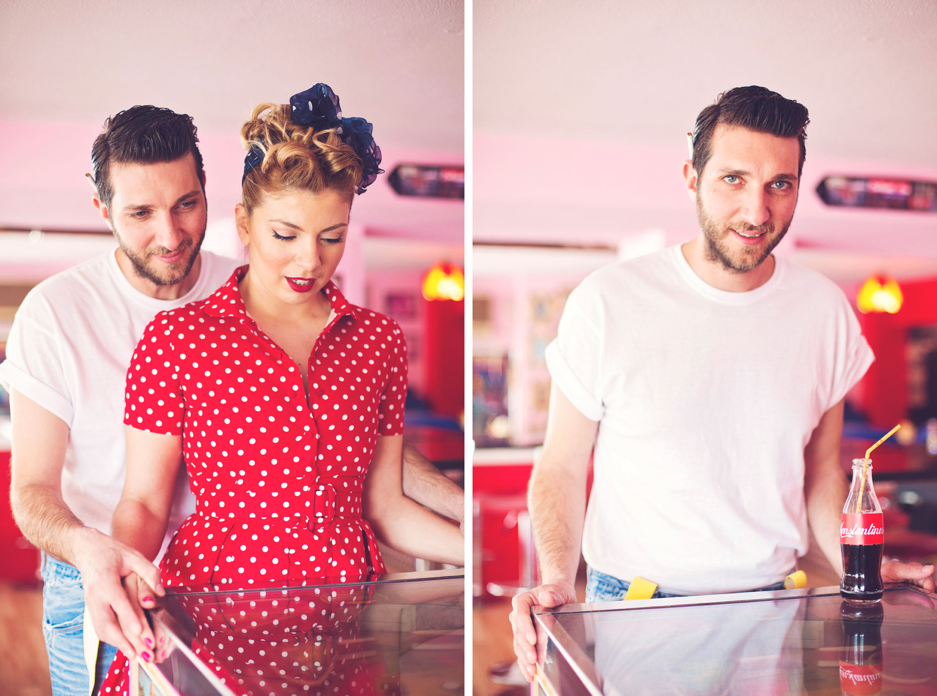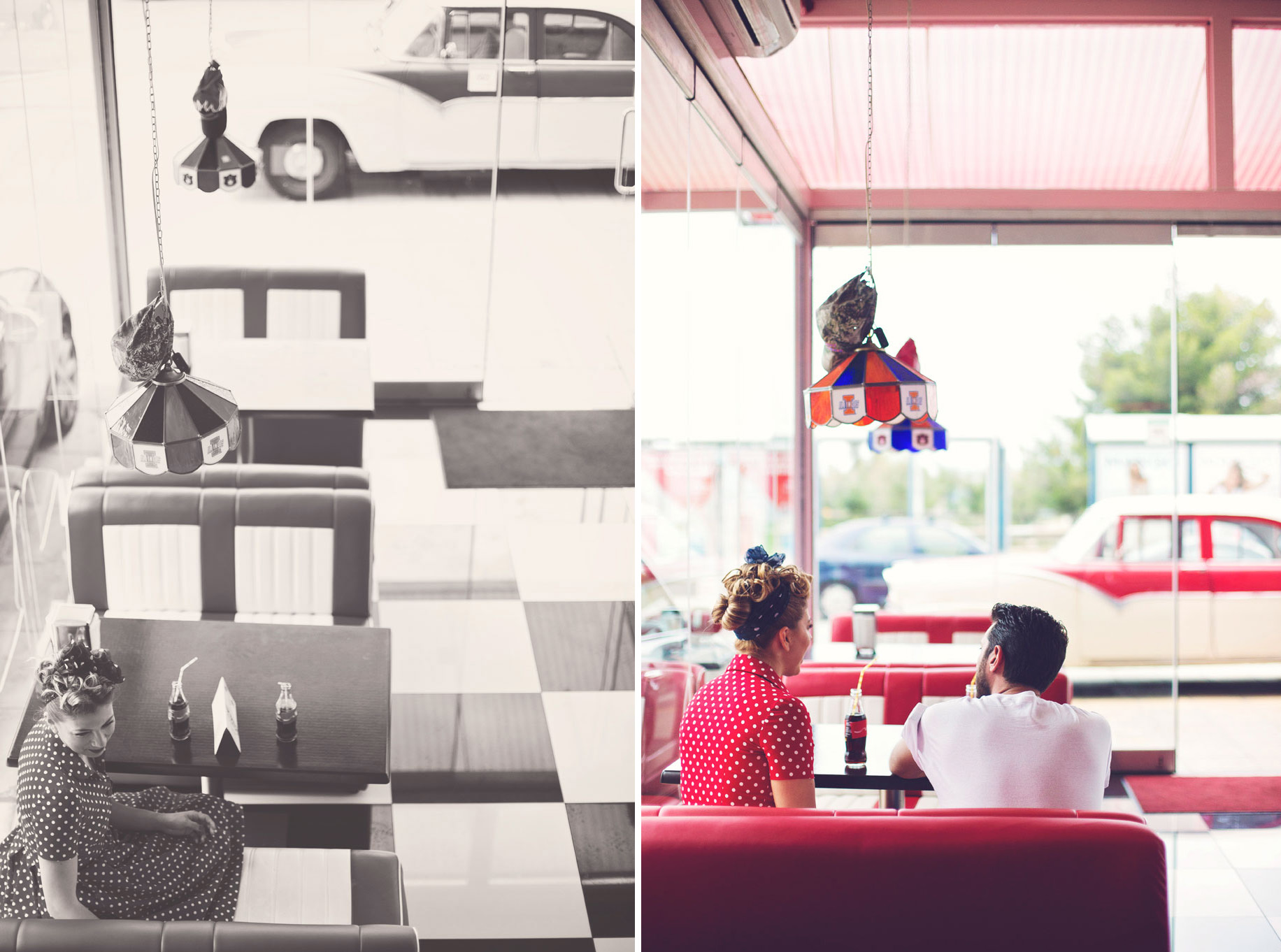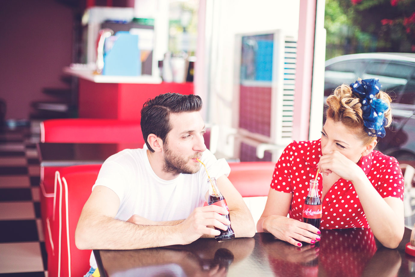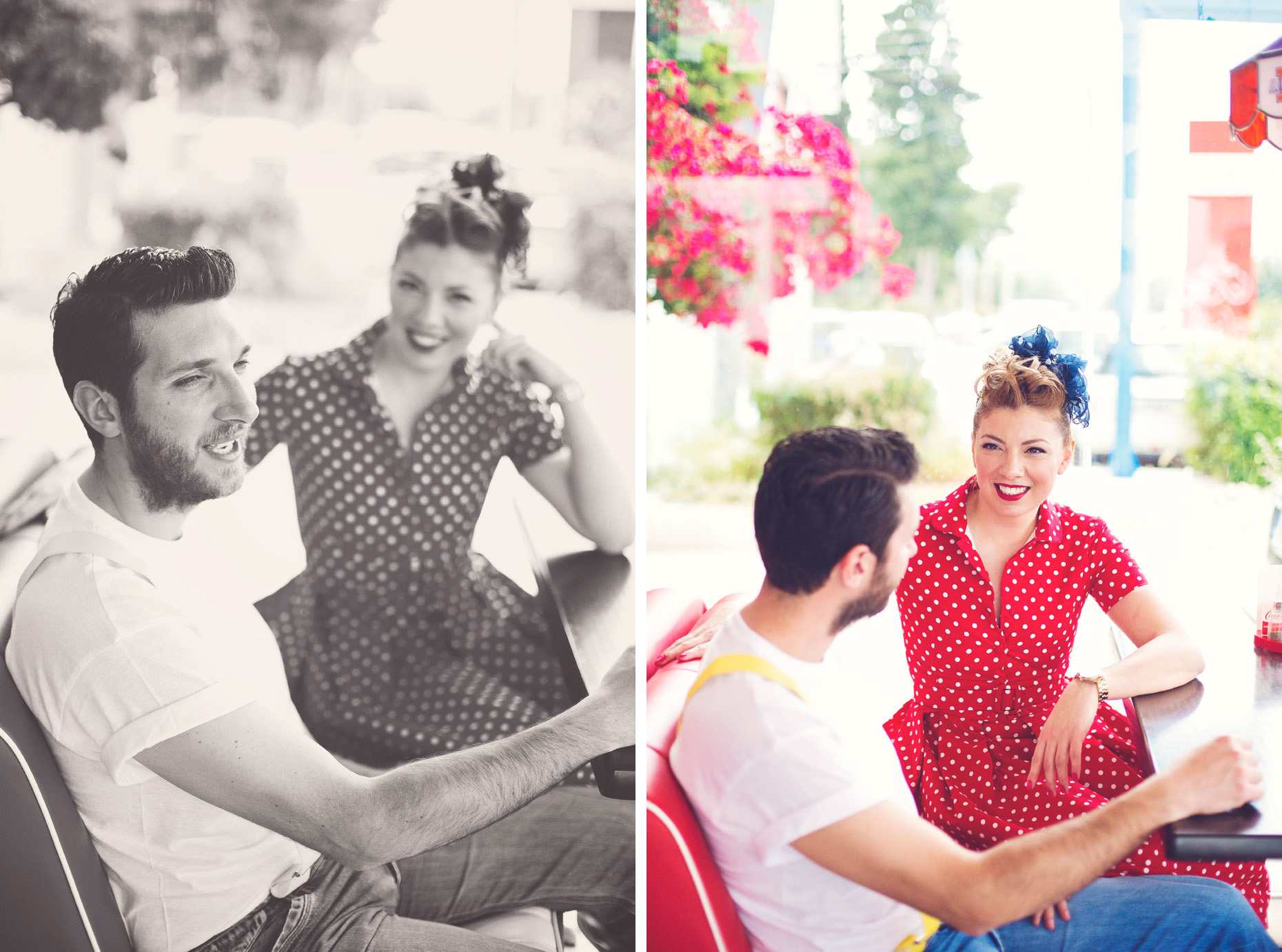 Some photo shoots carry a special kind of magic, the kind that lets you step into another era for a little while. Our 50’s American Diner–inspired session with Arhontoula and Konstantinos was exactly that kind of dreamy experience.