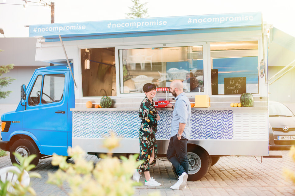 And speaking of smiles, Vassiliki is one of the most sparkly ladies I have ever met! Her luminous smile can make your day no matter how gloomy it is. Dimitris has a killer sense of humor, and it was quite a challenge to keep my camera steady during their pre-wedding shoot. This easy-going couple loves street food and I was over the moon when we decided to do the shoot at Athens biggest open food market (Renti’s market) where one of the most famous burger spots is located: Überness.