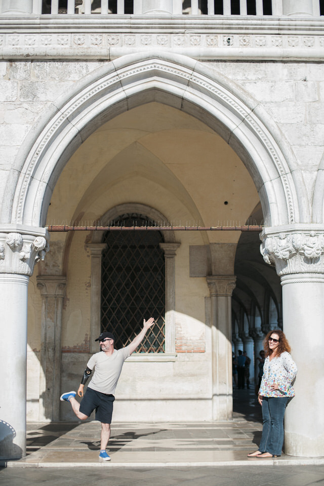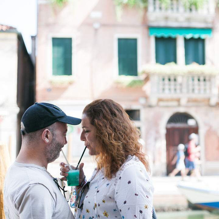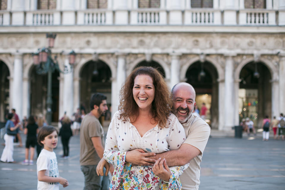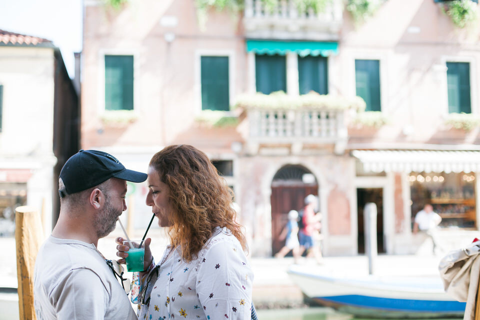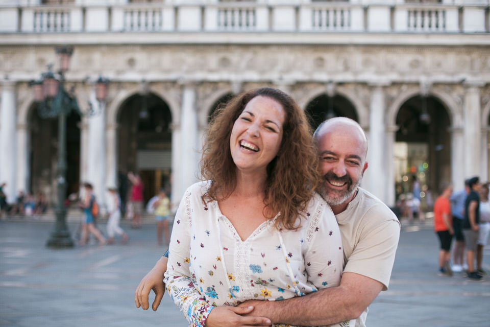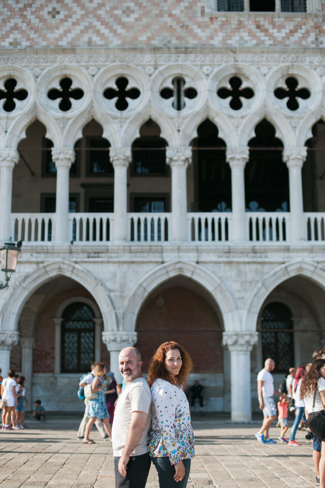 Venice is a living proof of the fight against time decay. Prepare yourself to be overwhelmed by the decorations, the sculptures, and the magical Italian architecture. We walked with Iliana and Panagiotis at Piazza San Marco which is surrounded by historic buildings and the spectacular San Mark’s Basilica. The couple wandered around, in a great mood, dancing and laughing, teasing each other and making everyone admire them.