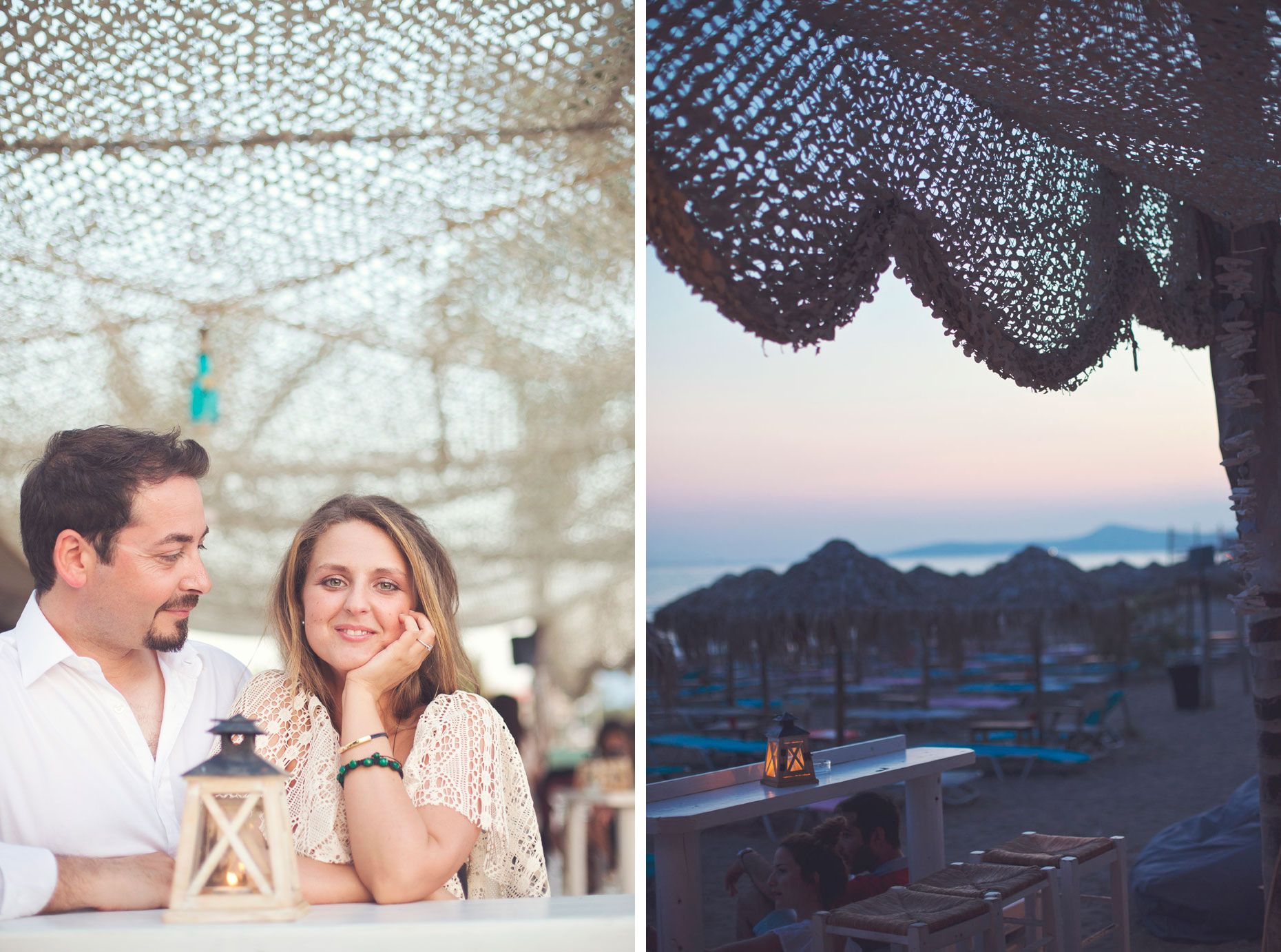 For their pre-wedding photography session, we chose the summery coastline of the Athens Riviera, a beloved destination for couples seeking natural light, turquoise waters, and a relaxed seaside atmosphere. Lagonisi, with its golden sand and refreshing sea breeze, offered the perfect backdrop. The music flowing from the DJ at Blue Beach Bar, the rhythm of the waves, and the warmth of the afternoon created an effortless, joyful environment. Peter and Julia embraced the moment with ease, laughing, teasing each other, and enjoying every small pause. Their energy was contagious, making every frame feel alive and honest.