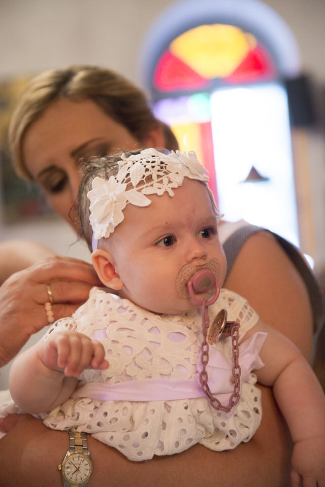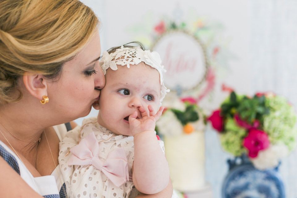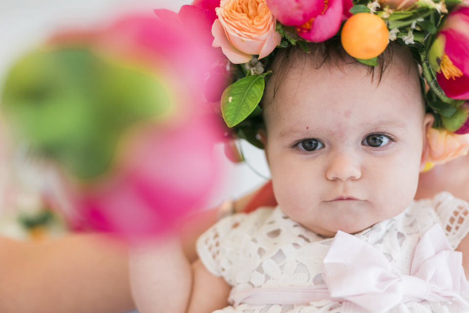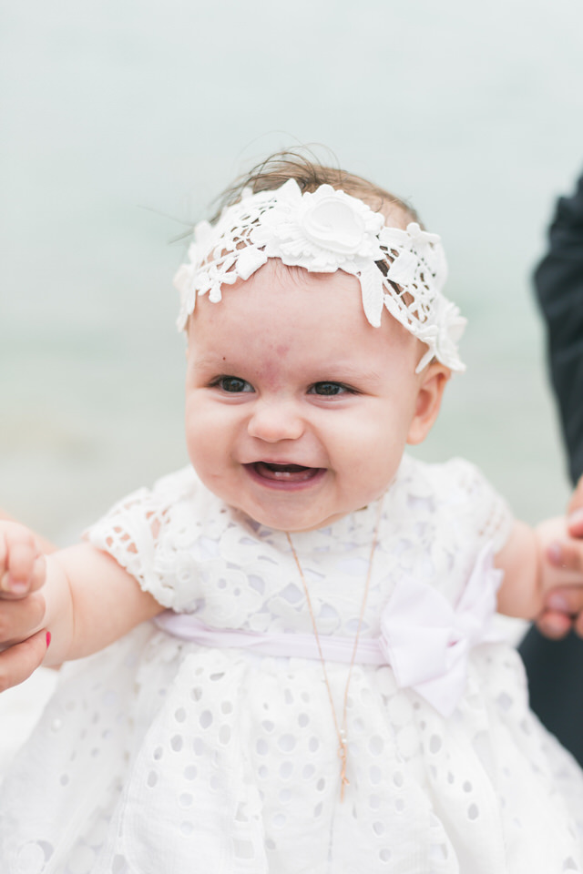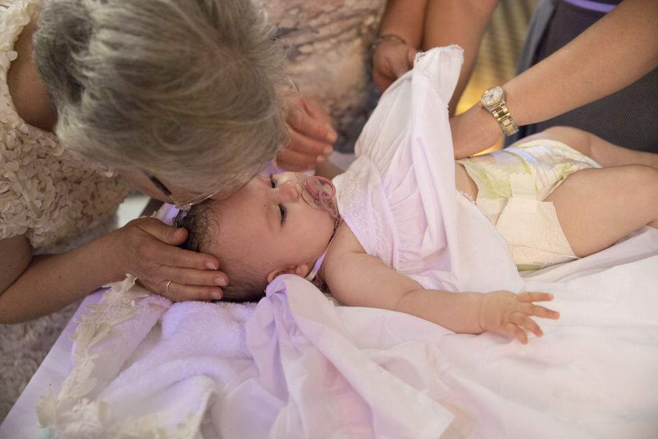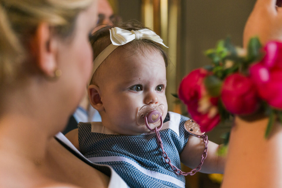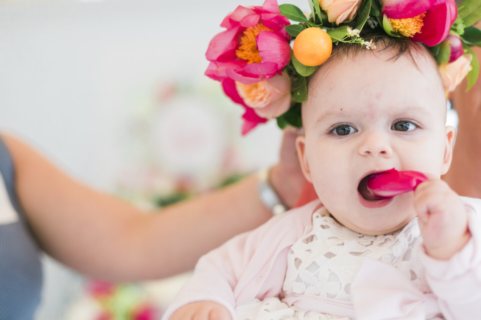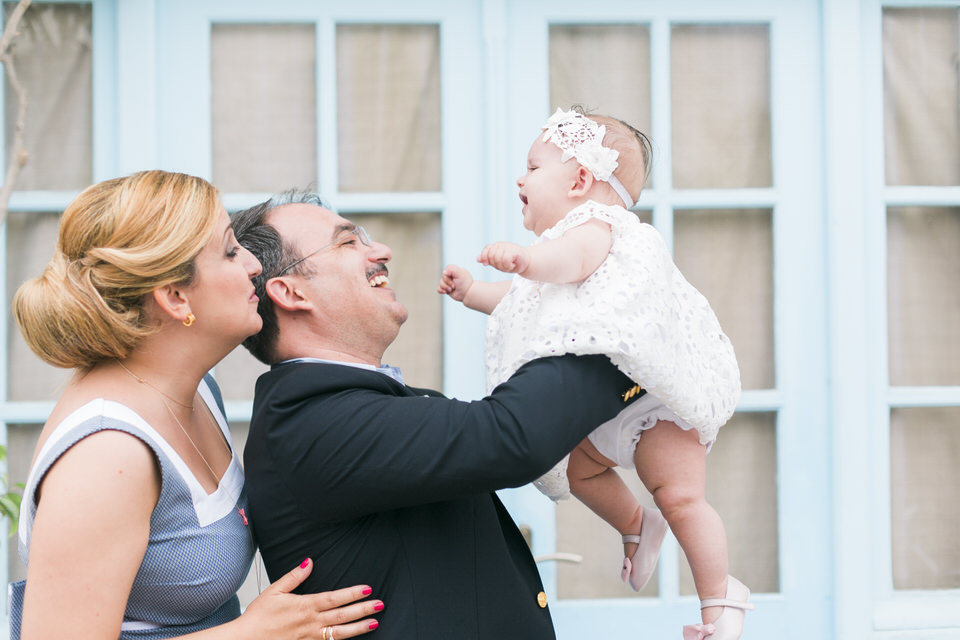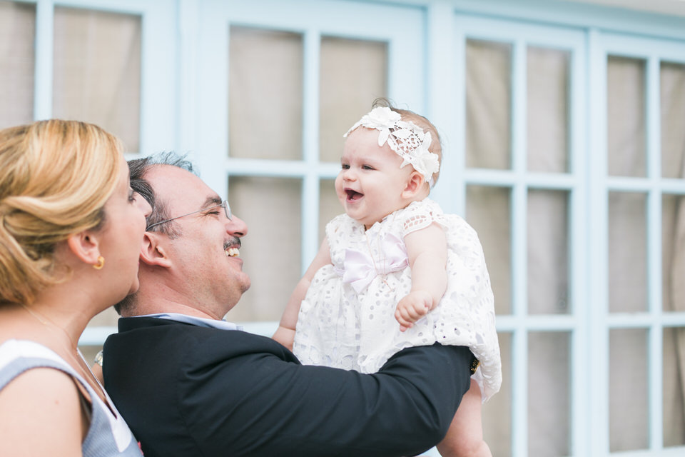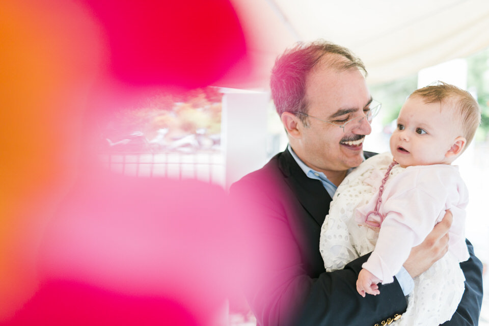 Katia looked so happy and she was a true lady, sharing her smile with everyone. She did not even shed a tear during the christening ceremony! What a champ! Before and after the baptism, this little angel was laughing and socializing with everyone, showing her positive disposition and enjoying her day. Katia was in love with the amazing decorations in big pink peonies that apparently looked very scrumptious to her.