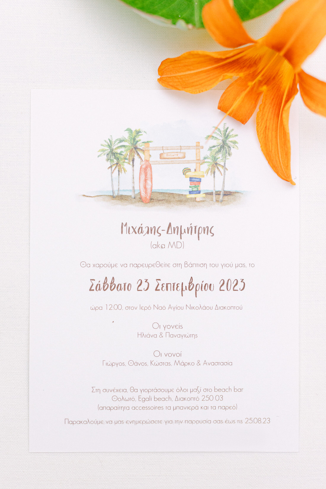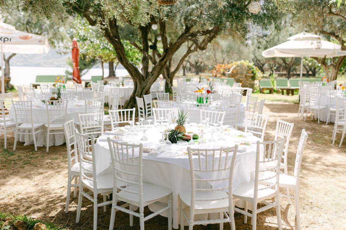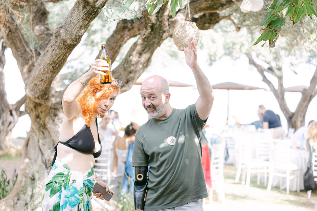 Set in the seaside village of Diakopto, the hometown of Michalis’s grandfather, this celebration was the perfect combination of tradition, summer light, and joyful spontaneity. His parents had one simple request for the guests: bring your swimsuits and your flip-flops! No dress code, no stress, just a carefree Saturday where everyone could be part of something real, relaxed, and full of laughter.