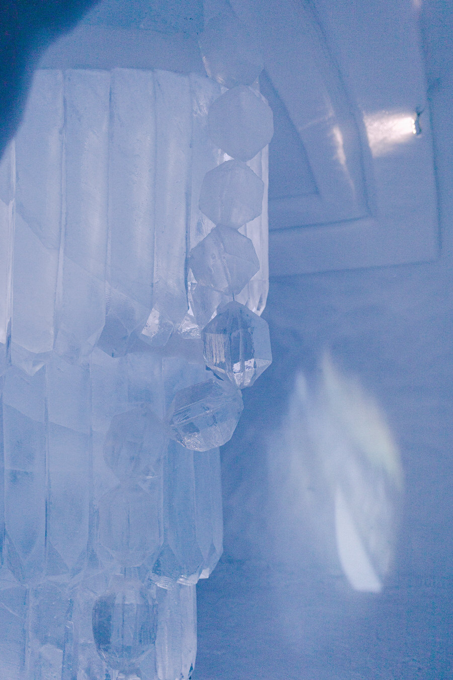 To photograph inside the ICEHOTEL, in -8 °C is not an easy task to accomplish. You must wear in special warm clothes; multiple layers – 4 to be exact – snow pants, thick boots and gloves, polar scarf and hat. One can imagine that is not so easy to move in such attire. However, once you entered the big iron doors with the reindeer fur you forget all about the extreme cold. Tons of ice and snow were all around me and at the same time it was like I walked in a museum full of pristine clear sculptures. Every single room was embellished with a work of art that was about to melt when the spring arrives with its high temperatures.