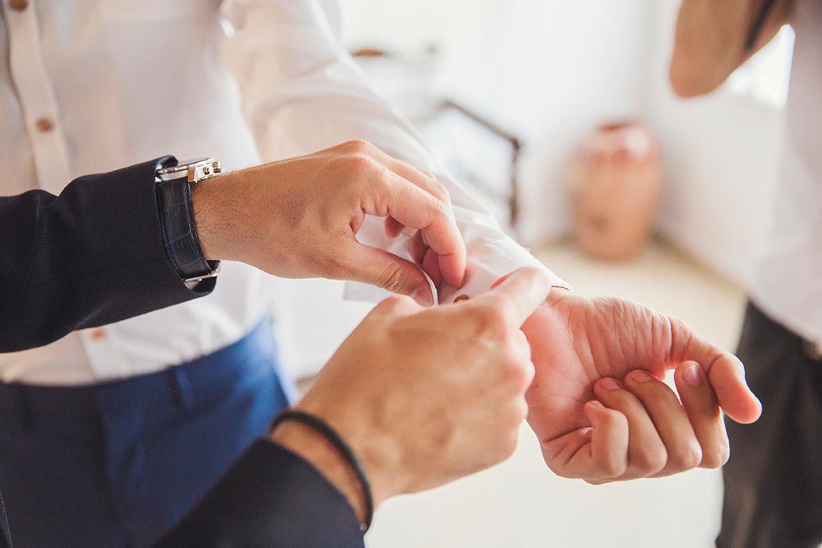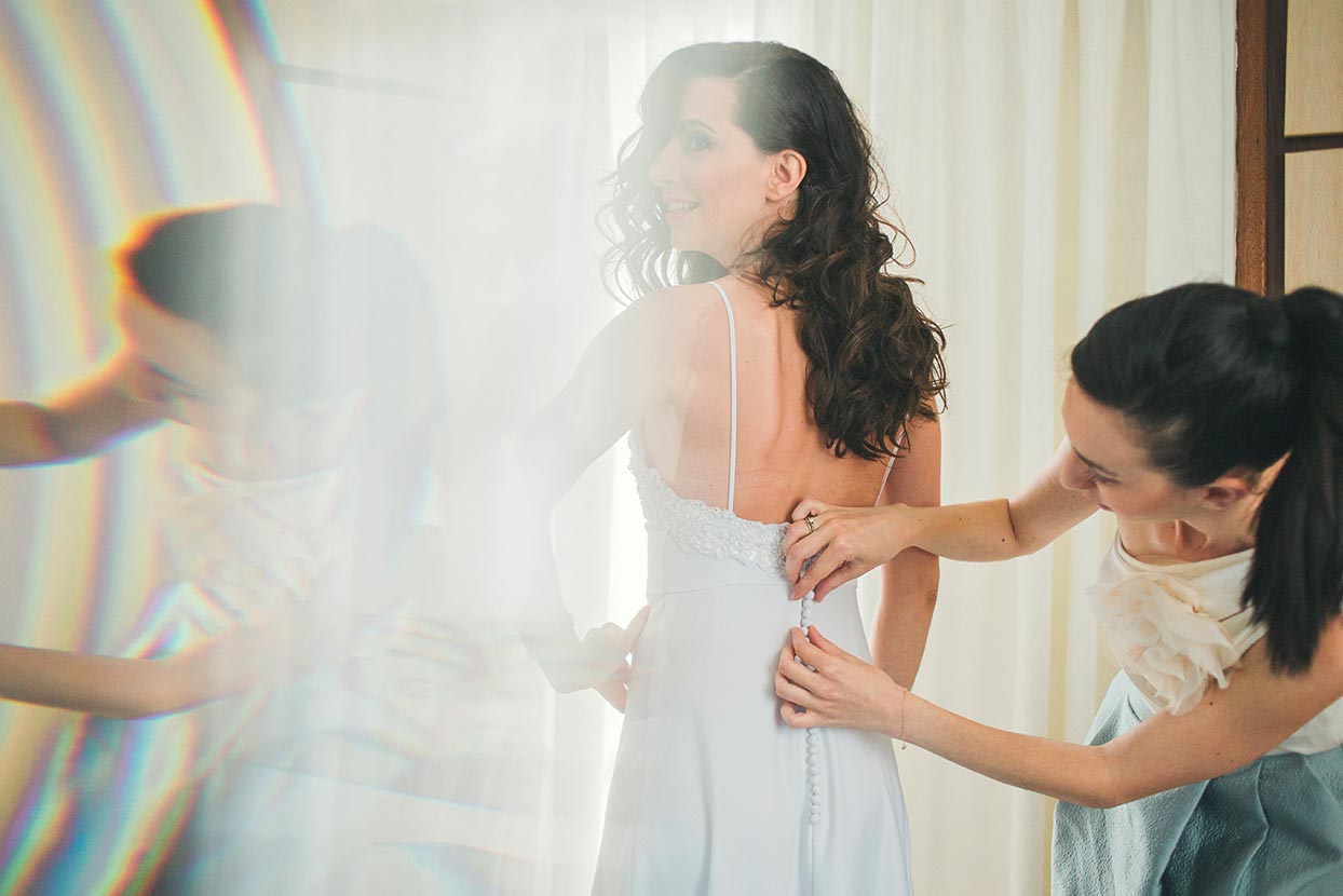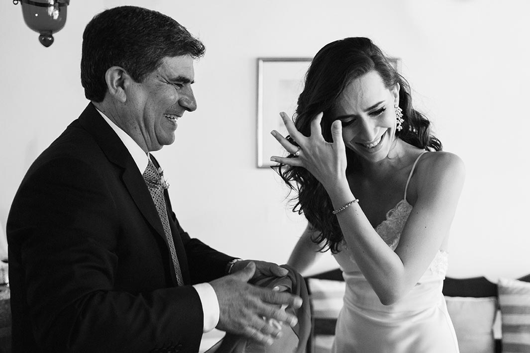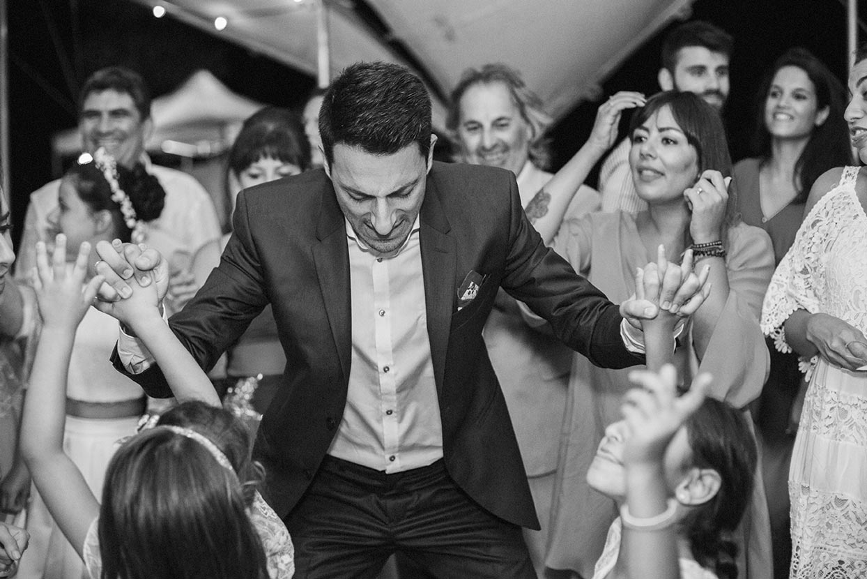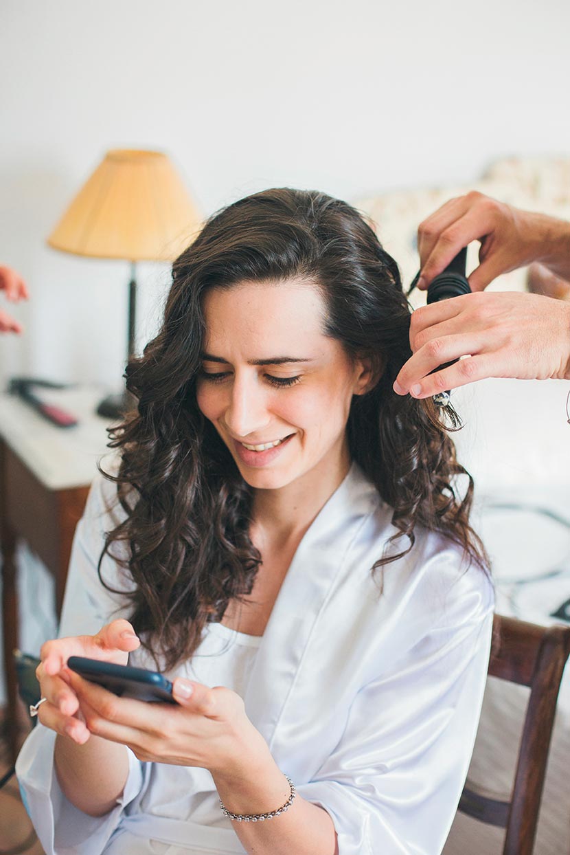 Before even arriving on the island, I had a feeling this wedding was going to be a lively celebration. Their friends had already started dancing and singing the day before the big event, the kind of energy you can’t help but love. The day began with the couple’s preparations at a beautiful Spetses complex that offered the perfect backdrop. Stephanie, elegant and calm, radiated a soft confidence. Christopher, full of excitement and attention to detail, reminded us why opposites attract and balance each other so beautifully.