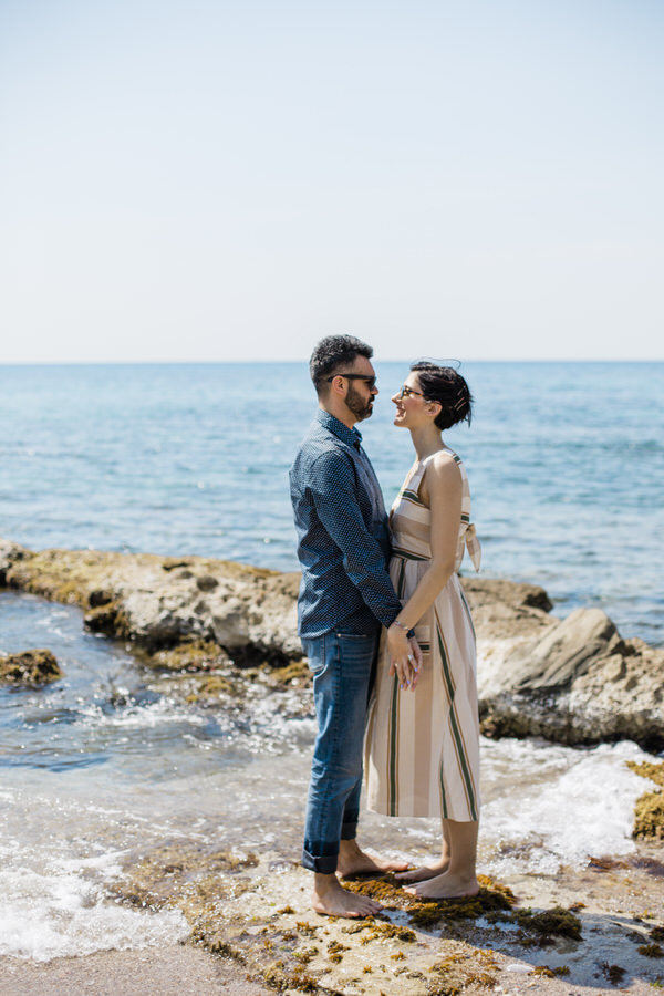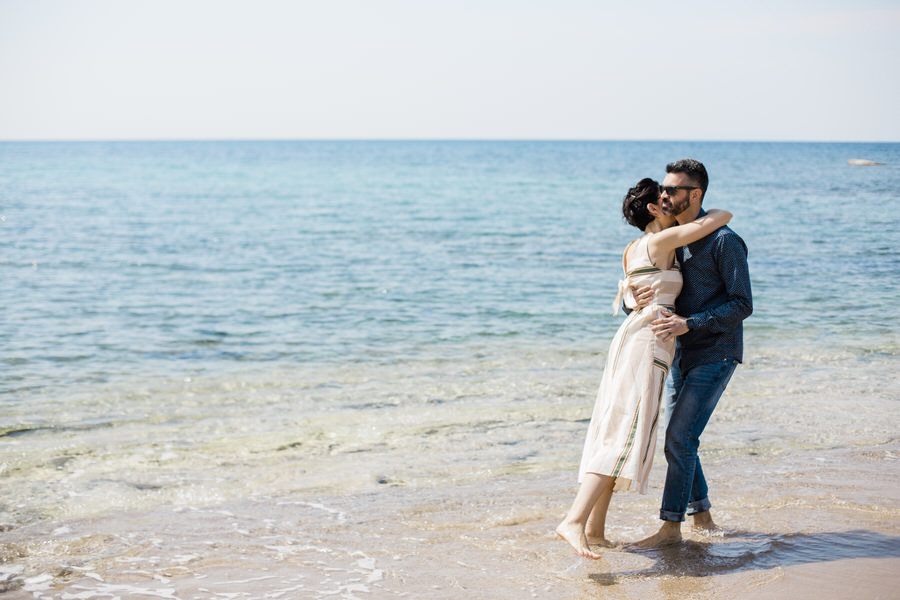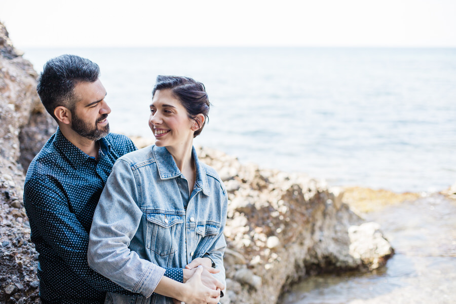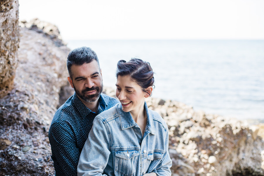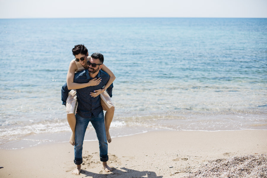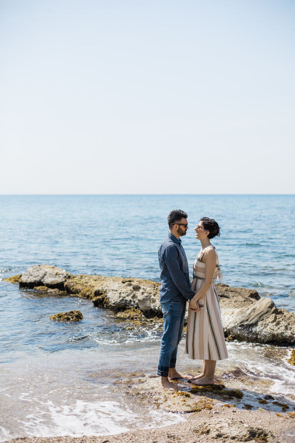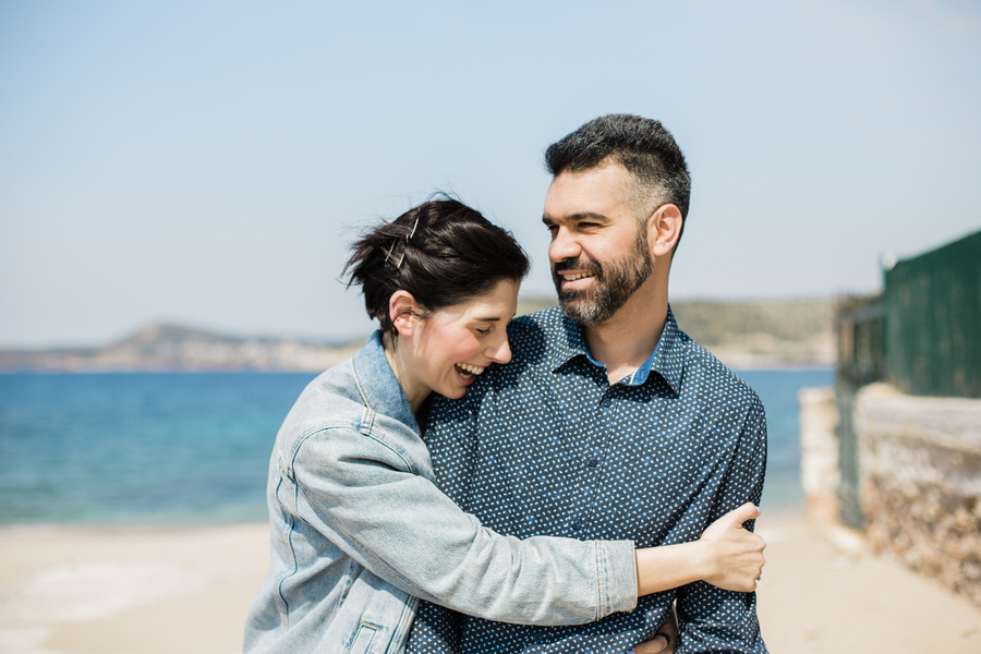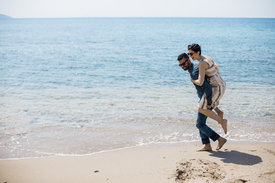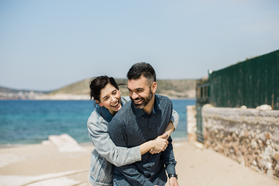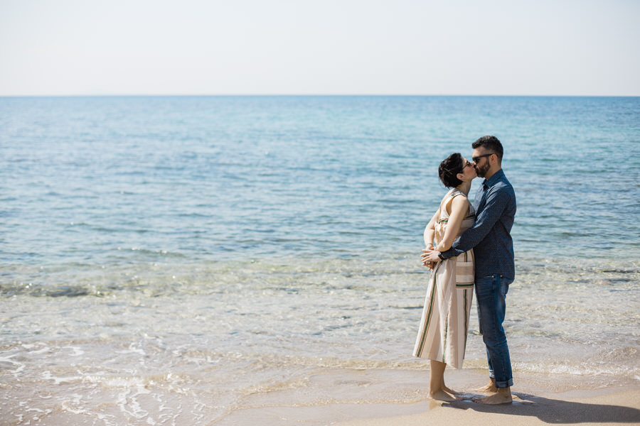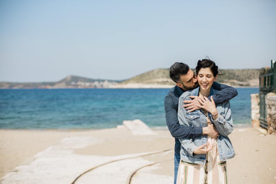 We were searching with Theodora and Vasilis a rather private beach, so we could do their pre-wedding shooting. Their wedding was about to happen in the old city of Athens, Plaka, so we thought that a pre-wedding at the beach was a nice contrast, and yet contained the Greek summery feeling.