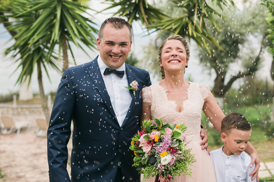 The couple found this ideal location for their romantic wedding in Lefkada, at the moment they first laid their eyes in this breathtaking pure greek scenery. In Ancient Greece, it is believed that the island was Homer’s Ithaca, and the palace of Odysseus was located west of Nydri on the south coast of Lefkada.